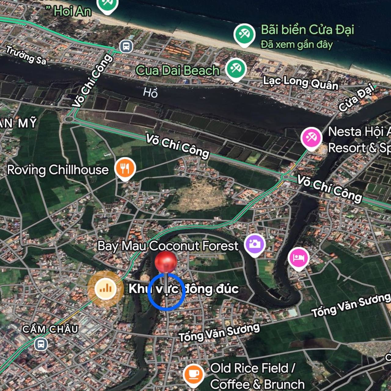 – Liền kề trục Cửa Đại, (5 phút) đã chạm bãi biển Cửa Đại xanh mướt.